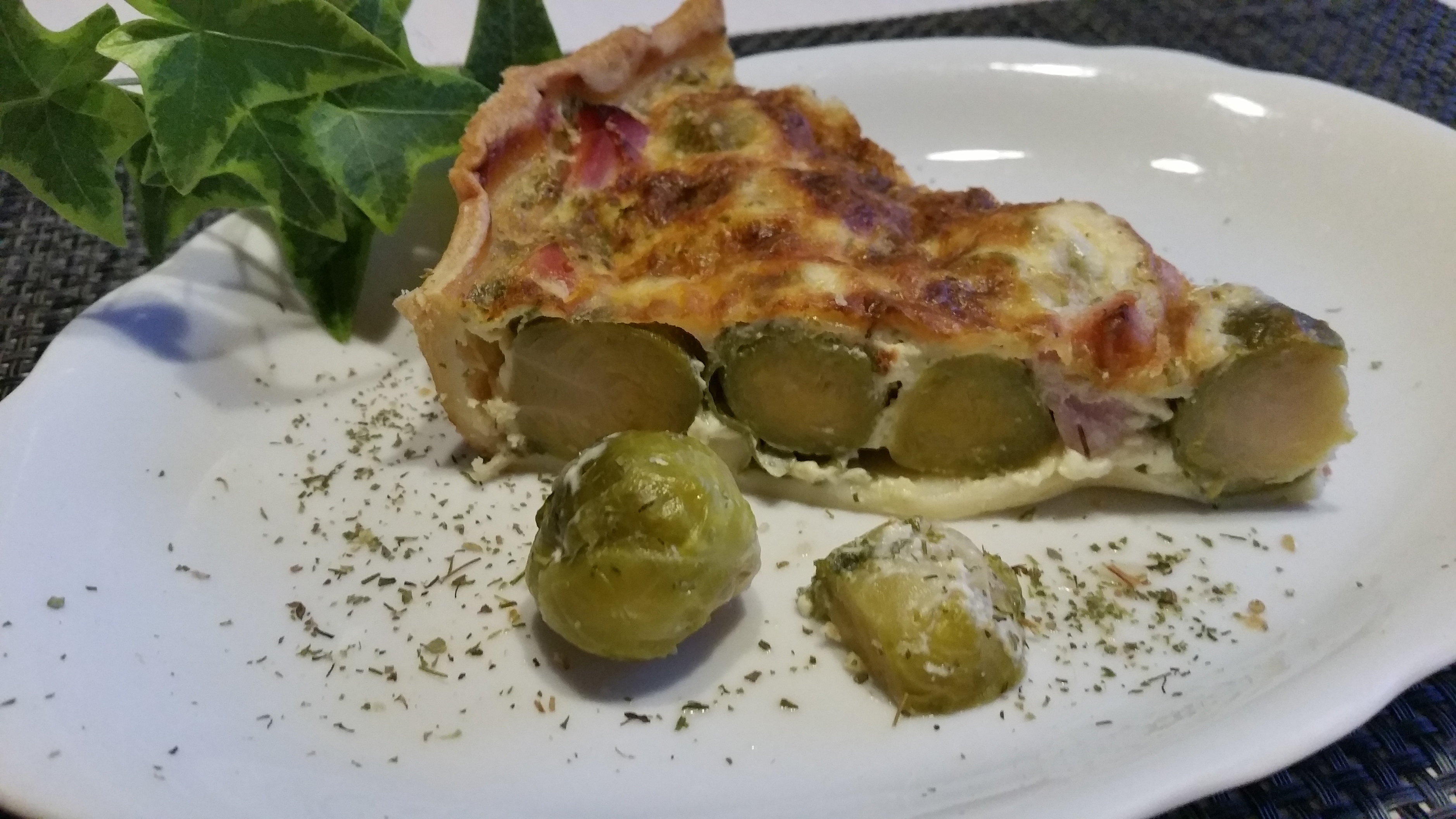 Ich hatte mal solch einen Hunger auf Rosenkohl. Eigentlich kommt auf eine Quiche nicht unbedingt Käse…aber es schmeckt einfach so gut.