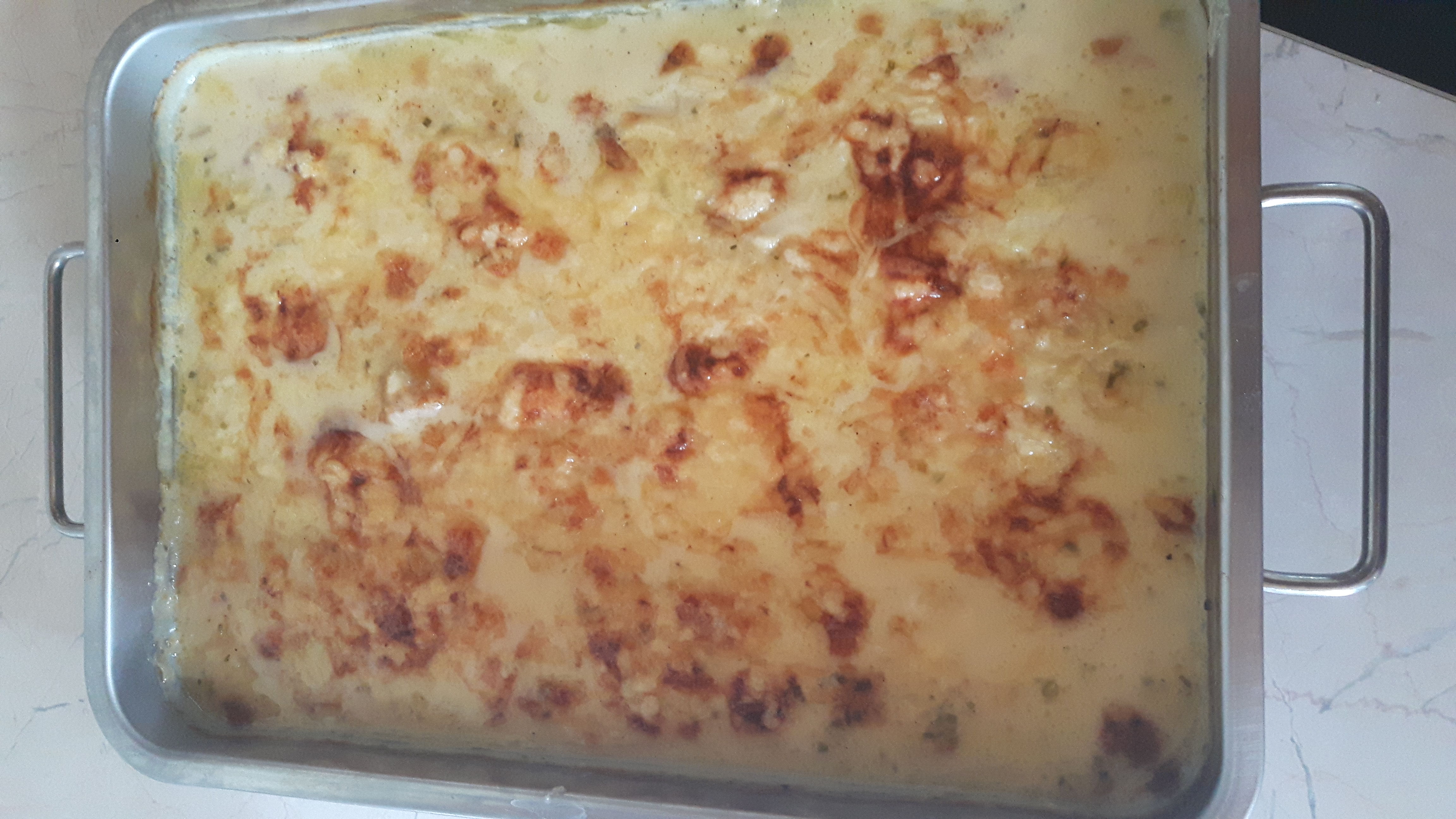 Bei uns gab es gestern Backofen-Zwiebelschnitzel. Viele Zwiebeln und dazu selbstgemachte Spätzle (davon fehlt das Bild).
