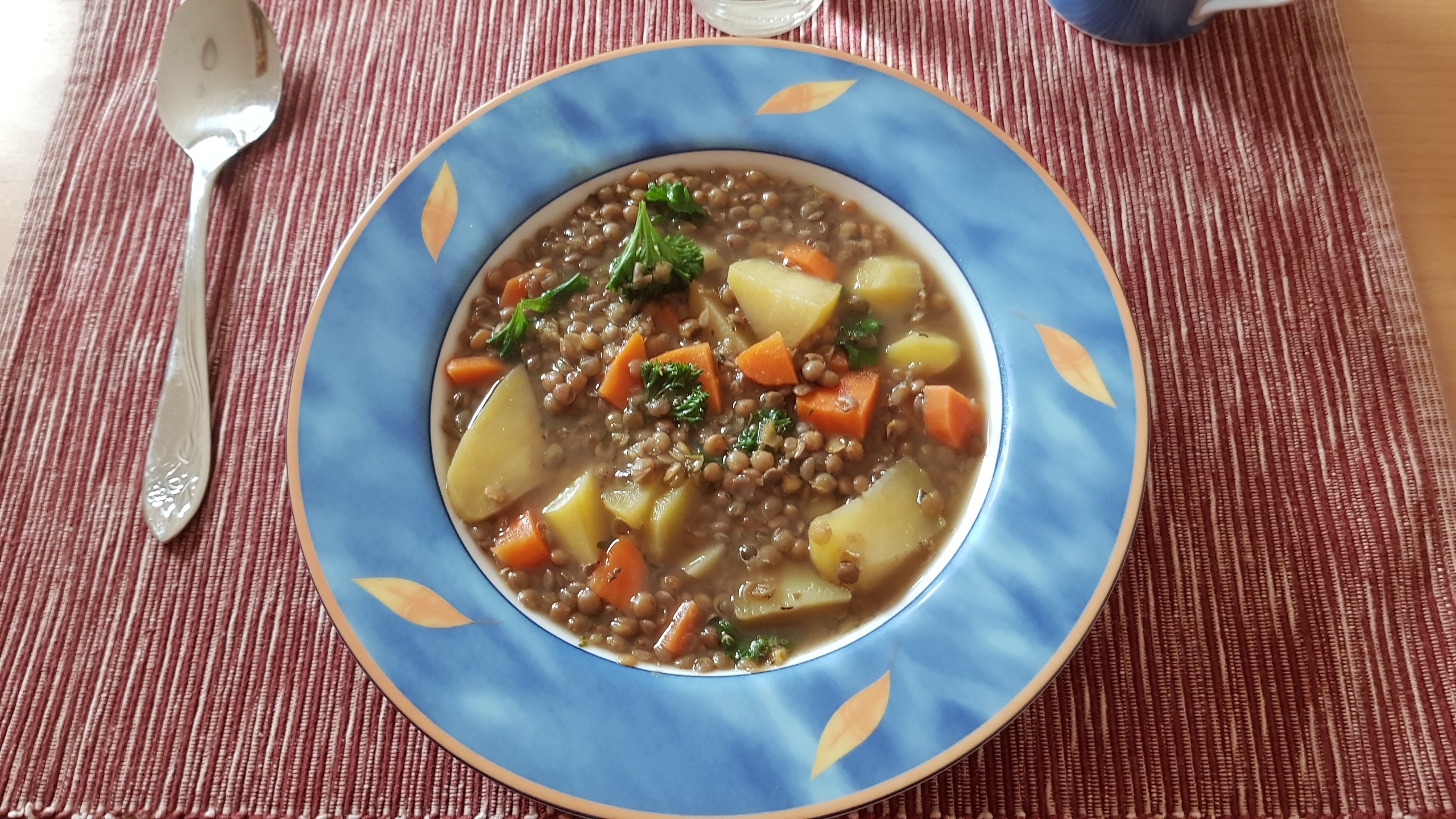 Wir hatten gestern Rinderrouladen, Kroketten, Spätzle und Rotkohl. Und vorher eine Hochzeitssuppe