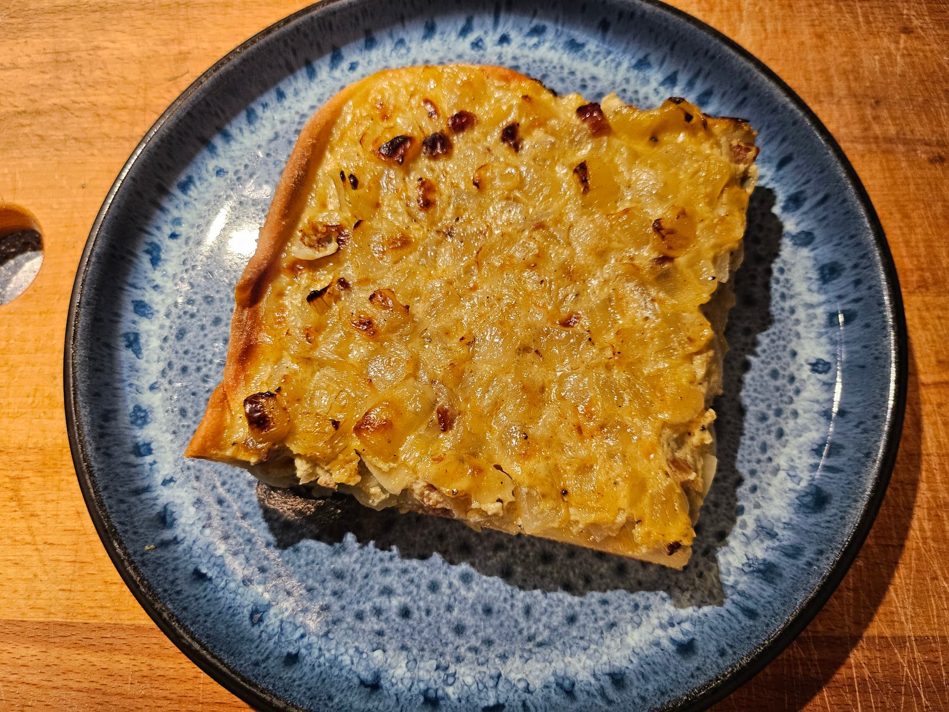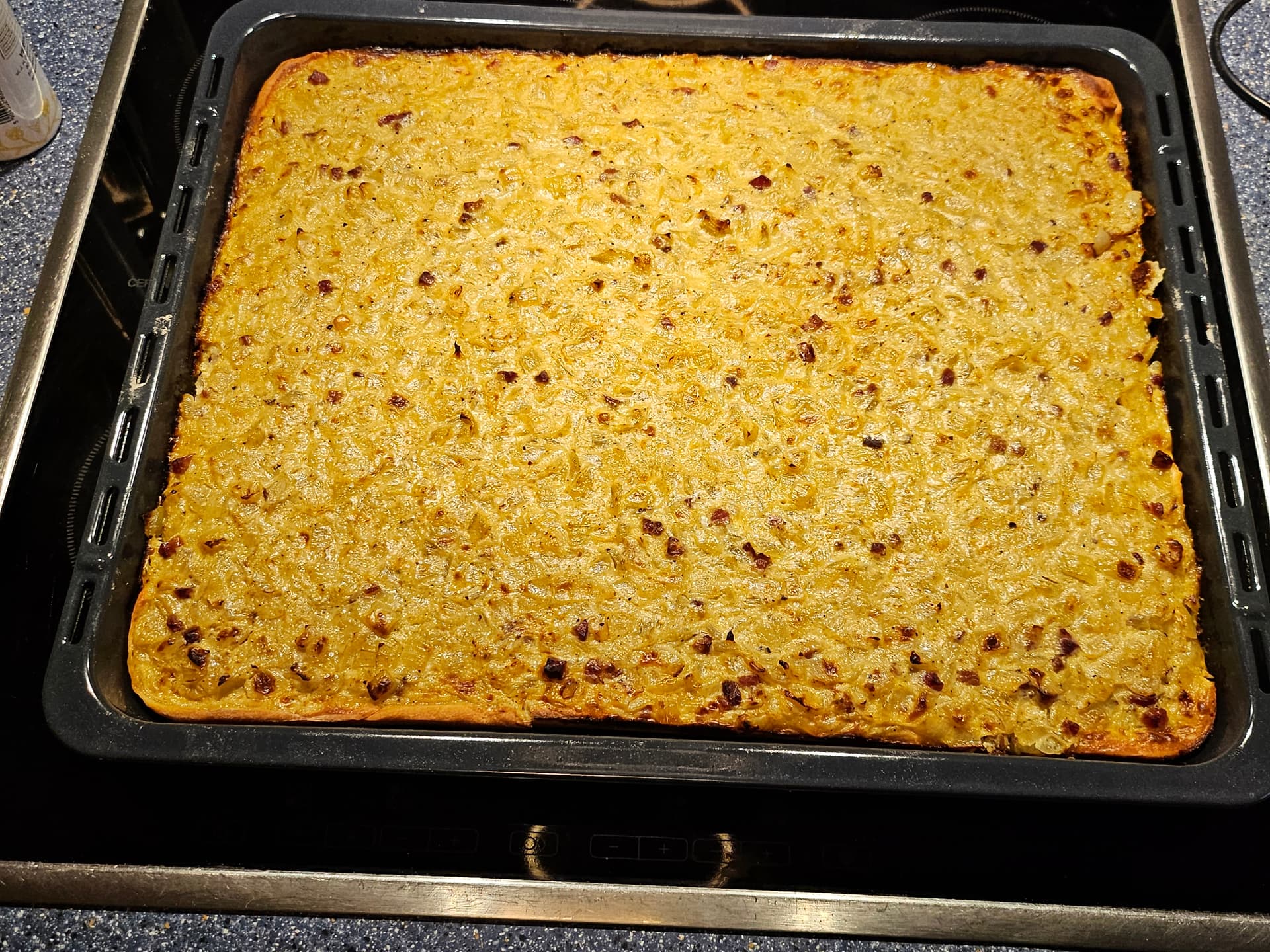 Zwiebelkuchen. Wir müssen Probe backen für ein Fest.