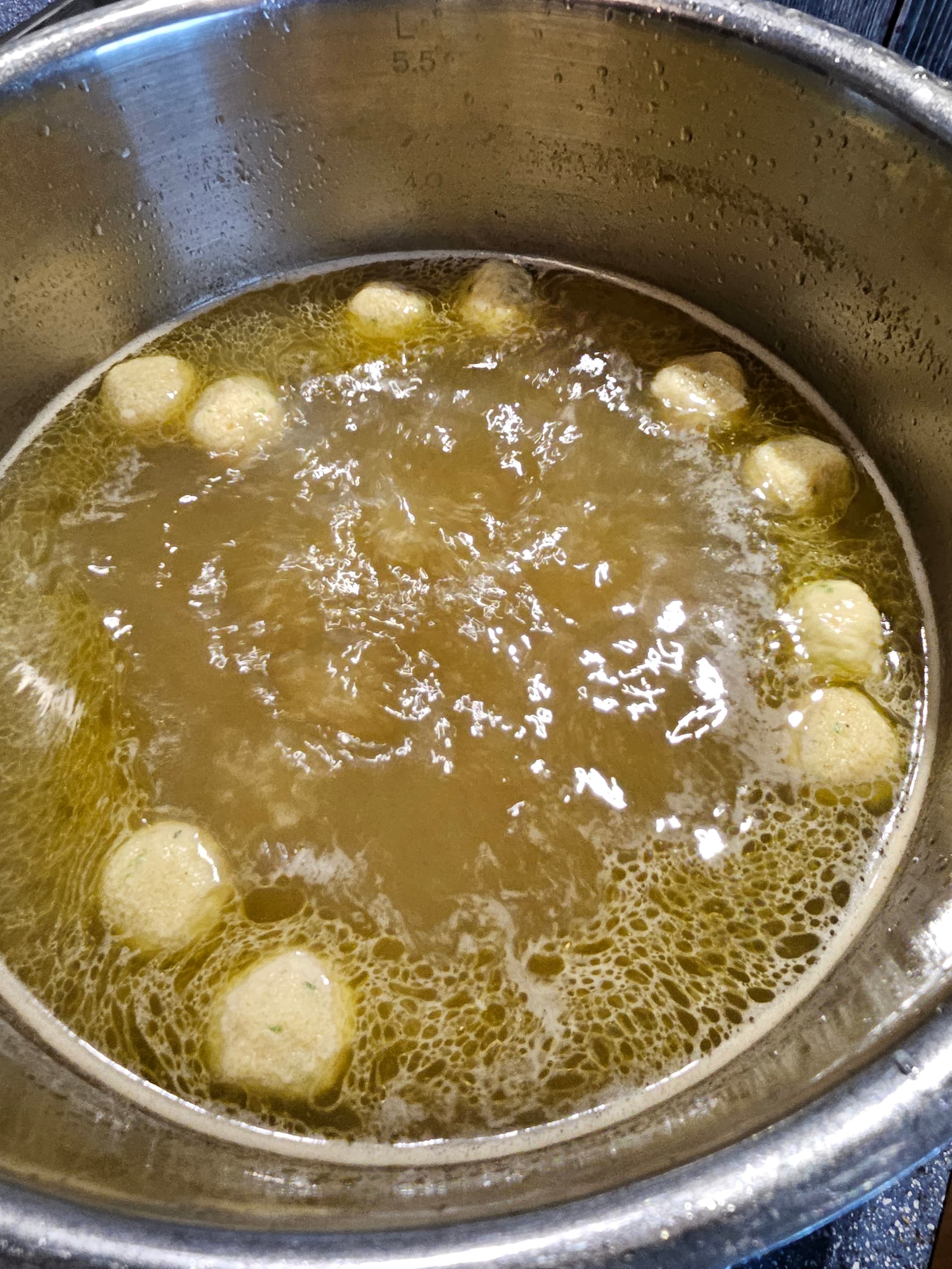 Ich habe die Ruhe des Feiertages dafür genutzt, 120 Markklößchen zu machen. Wir essen die nicht wie sonst alle als Vorspeisensüppchen mit drei Stück in der Brühe oder so, sondern mit gewürfelten Karotten und Fadennudeln als Hauptmahlzeit, fast schon ein Eintopf. Klar, diese Menge wird gedrittelt und zwei Portionen werden eingefroren. Eine gute, selbstgemachte Rinderbrühe gehört da natürlich als Ausgangsprodukt dazu (darin ziehen die Klößchen dann gar). Ist viel Arbeit in dieser Menge, aber ich koche und backe ja so gern und ich liebe dieses Gericht seit Kindertagen. Meine Mama sagte immer, sie sind besser als ihre. Sehe ich nicht so, hat mich aber natürlich sehr gefreut. Schöneres Lob gab es nicht!