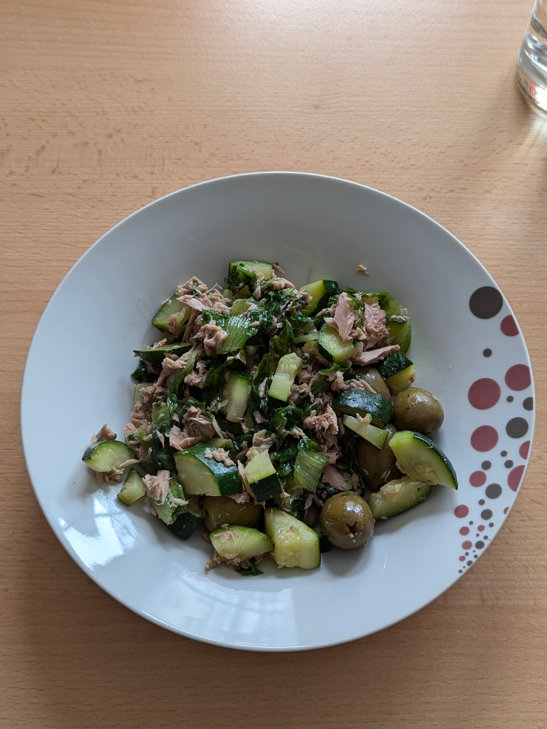 Auch too good to go, hab aus dem Gemüse ein Ratatouille gekocht, dazu gibts Salat und Spaghetti