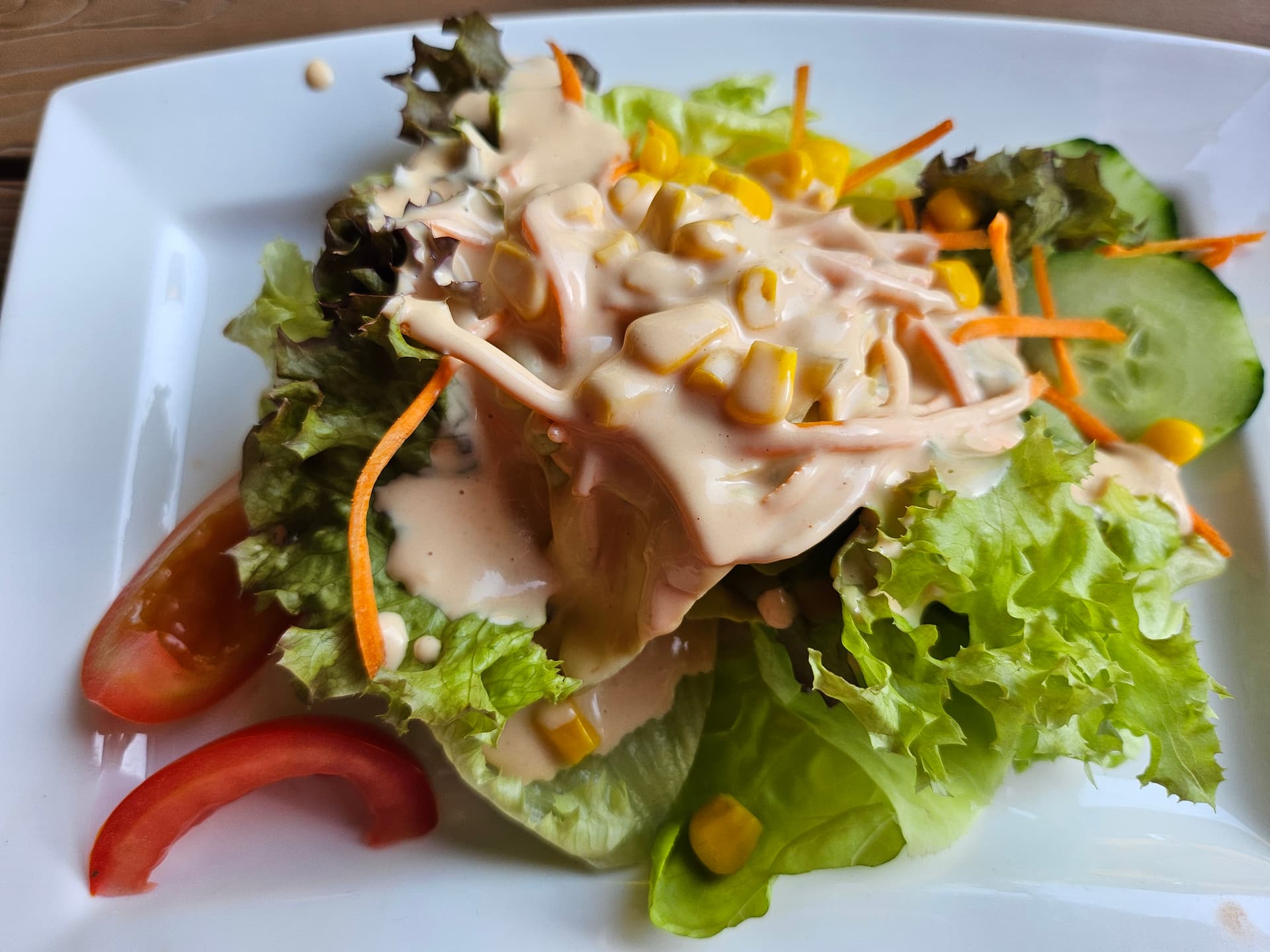 Bei uns gibt es jetzt TK-Pizzen mit einen großen bunten gemischten Salat mit Schafkäse.