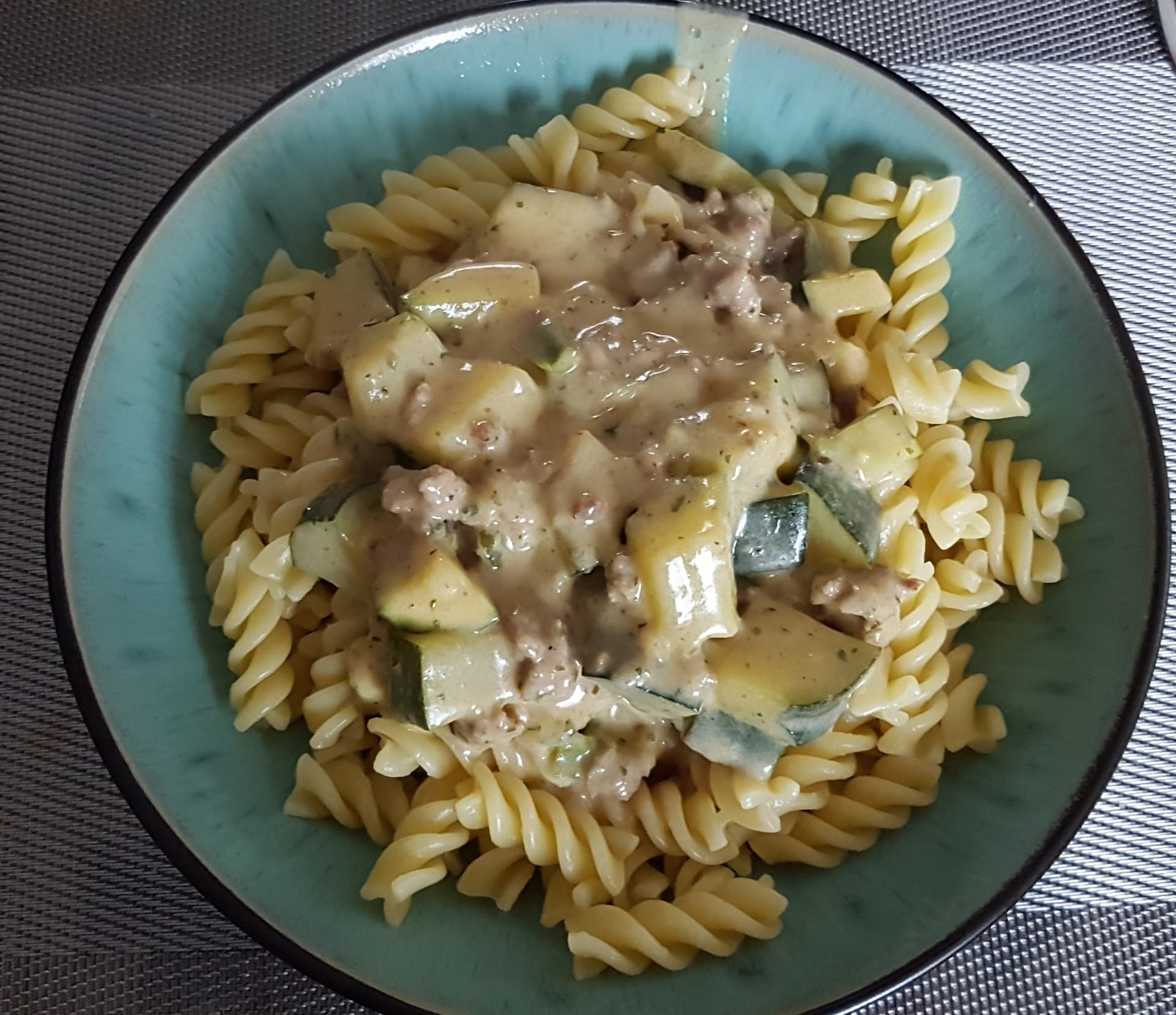 Danke! Hack vom Hofladen vom Kollegen von Göga, Zucchini von den eigenen Pflanzen.