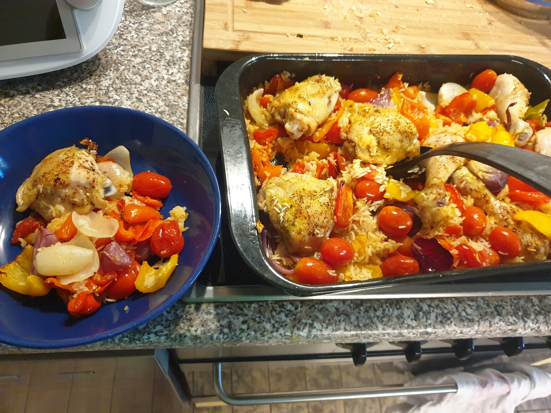 Bei uns gab es heute das von Petti verlinkte Hähnchen mit Zucchini. Super lecker. Hatten zwei kleine Abwandlungen eingebaut. Lauch weggelassen und dafür ne große Zucchini aus dem Garten genommen und an Stelle von Gouda haben wir Parmesan drüber geraspelt. Der musste weg. Jammi