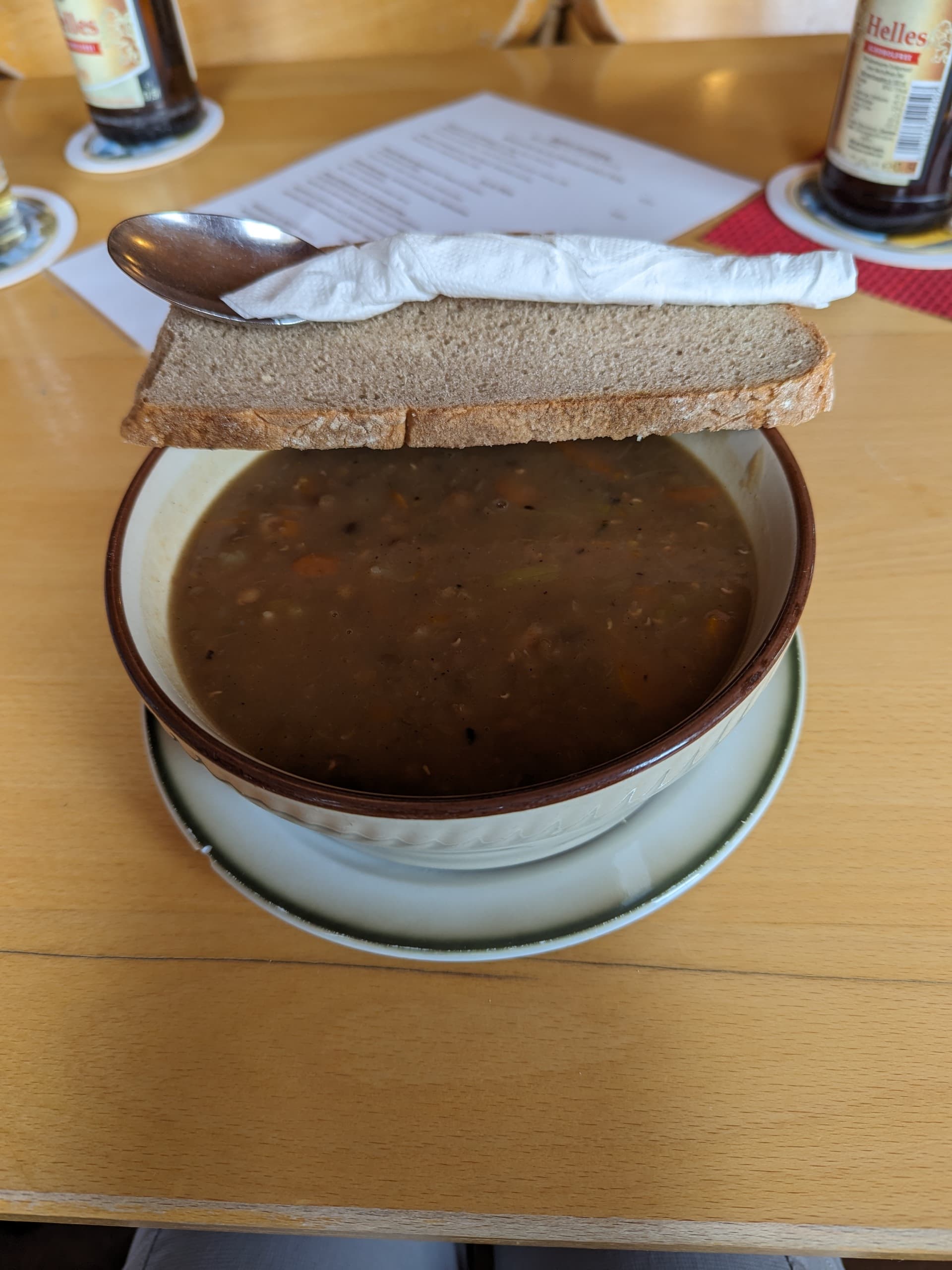 Heute haben wir spontan eine Kartoffelsuppe gemacht, obwohl es draußen eigentlich viel zu schön und zu warm dazu ist.
