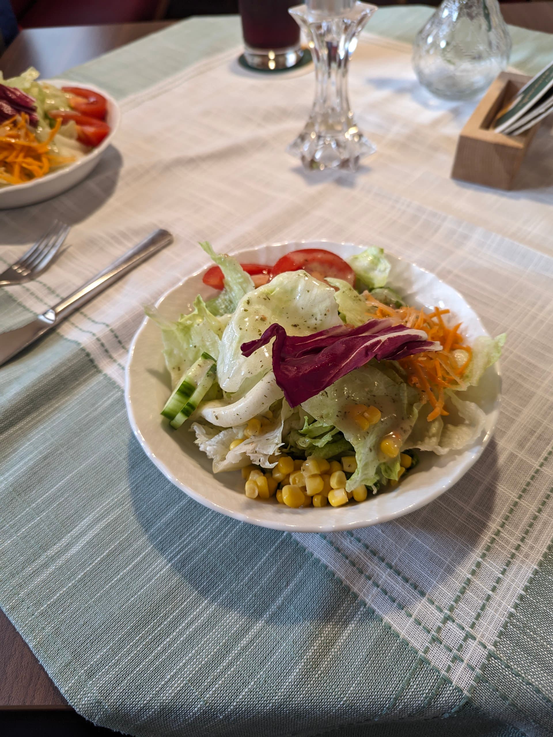 Ich war auf einer Karnevalsfeier mit Pizzasuppe und einem Schichtsalat, der mit Tacos die kleingedrückt wurden abgerundet wurde. Die Suppe war ok, der Salat richtig gut. Der Nachtisch war auch lecker. Verschiedene Puddings mit und ohne Alkohol und die Käseplatte war wunderbar.