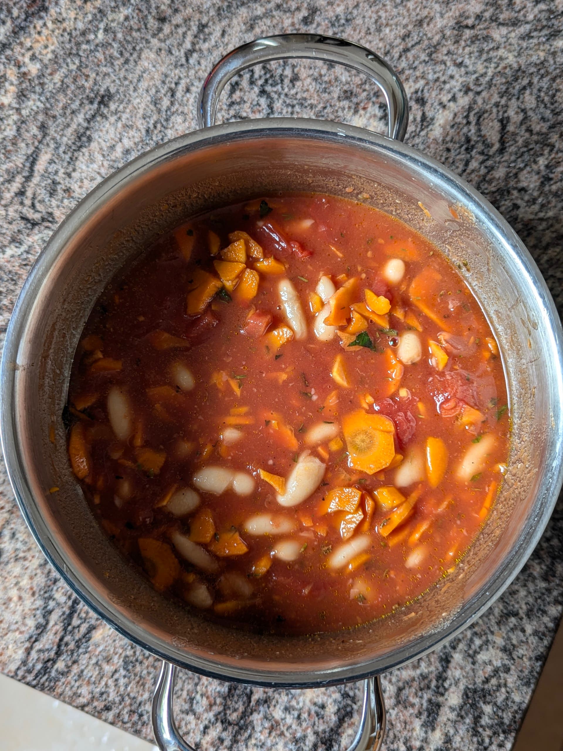 Weiße Bohnen mit Karotten, dazu Muschelnudeln