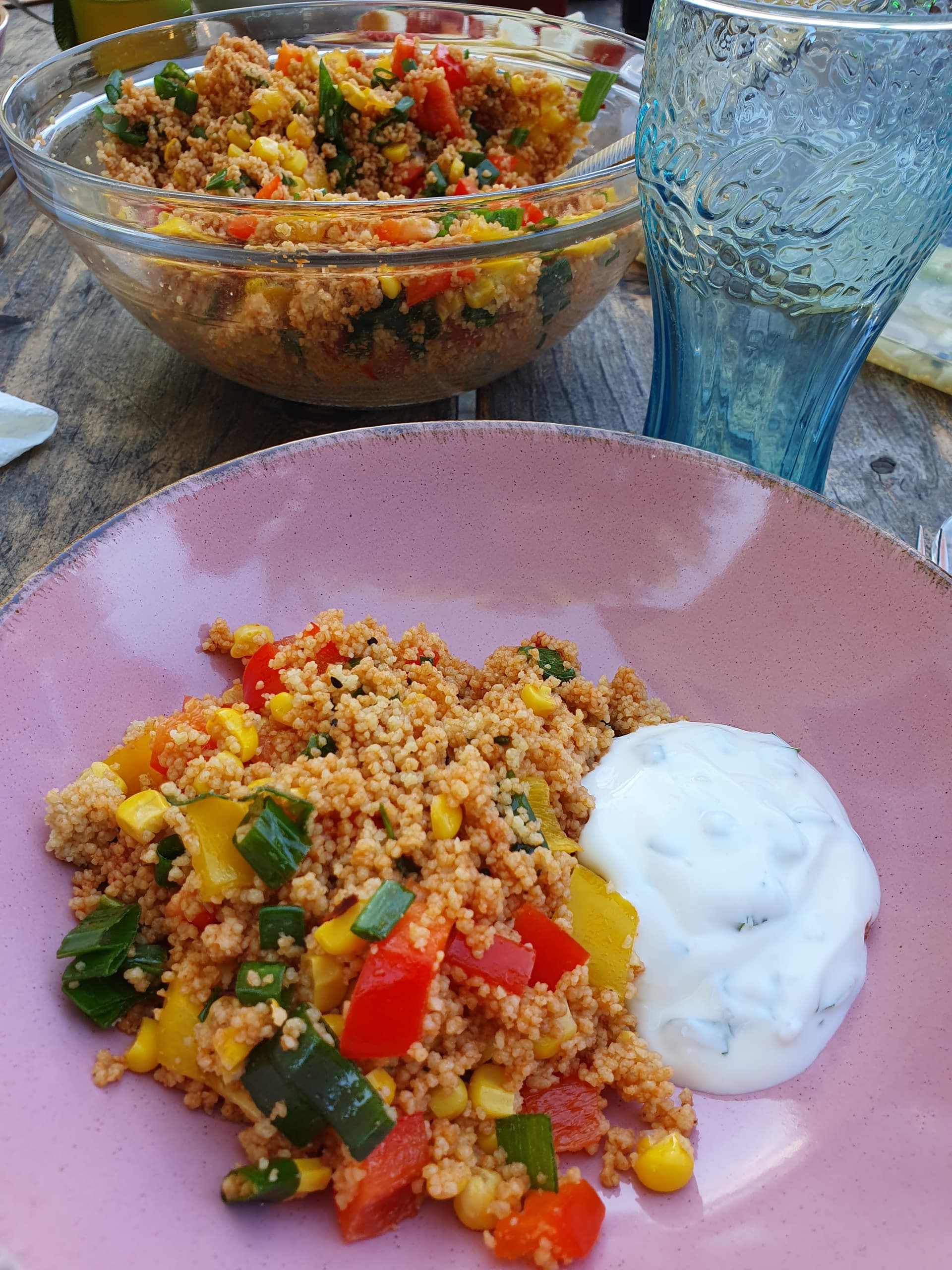 Ich habe auch gerade den Wurstsalat fertig gemacht. Mein Mann macht sich den Käse dann noch in seine Portion(en), ich mag das nicht so.