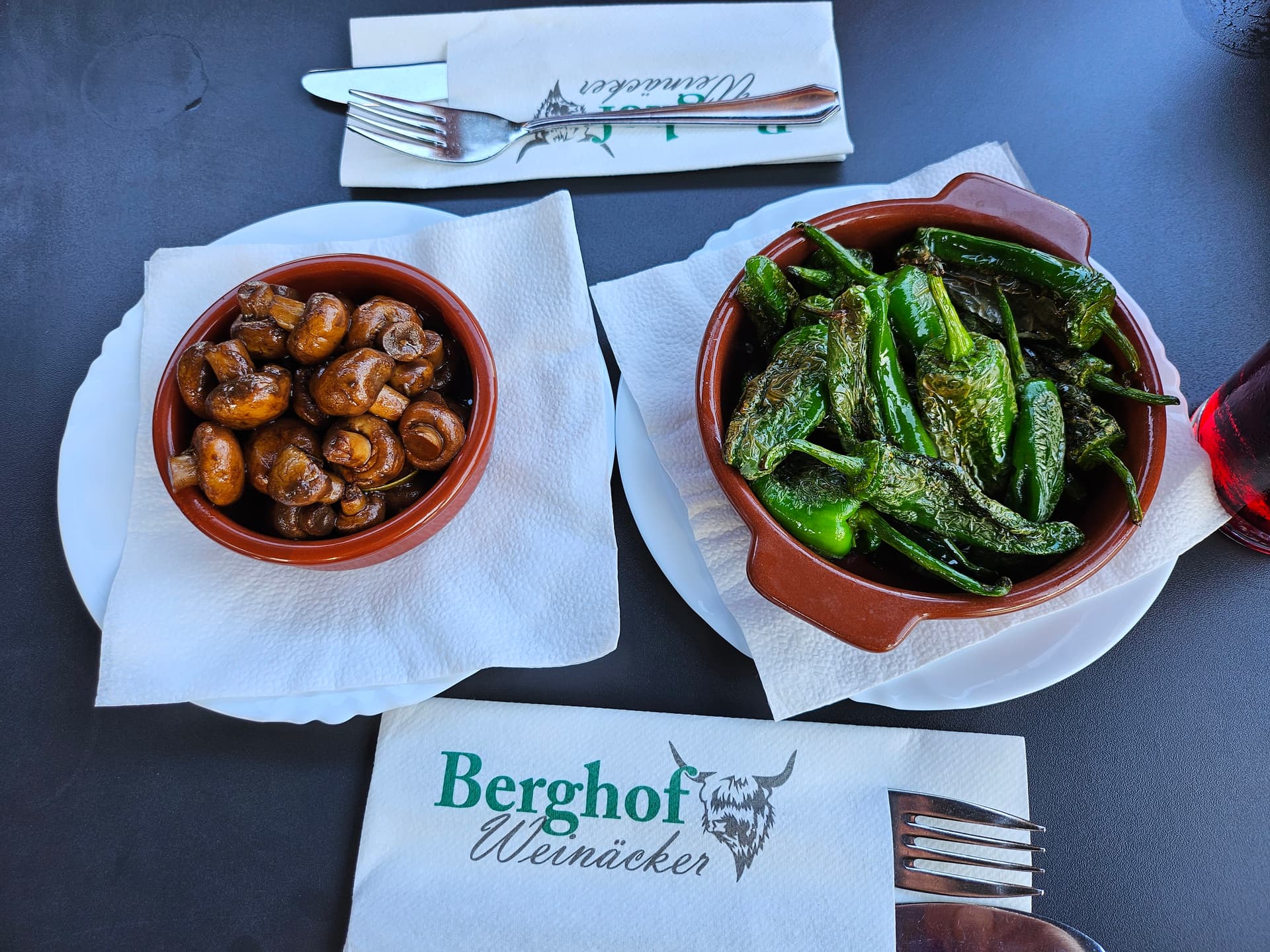 Es gab Garnelen 🍤 in heißem Öl mit viel Knoblauch und französischen Baguette 🥖 dazu