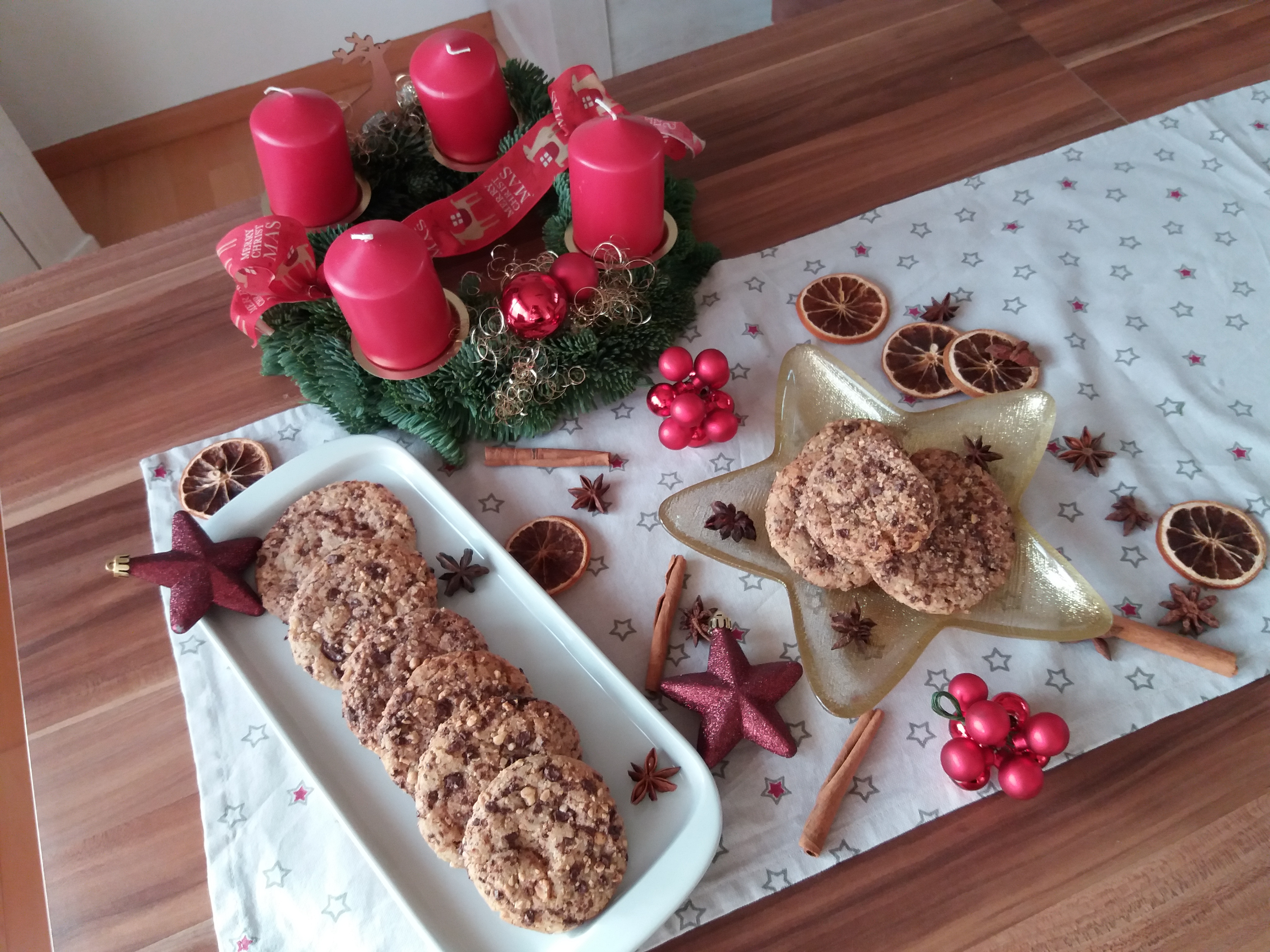 Ich bin jetzt fast durch mit der Weihnachtsbäckerei. Nur noch der Lebkuchen, der muss noch eine Woche ruhen.