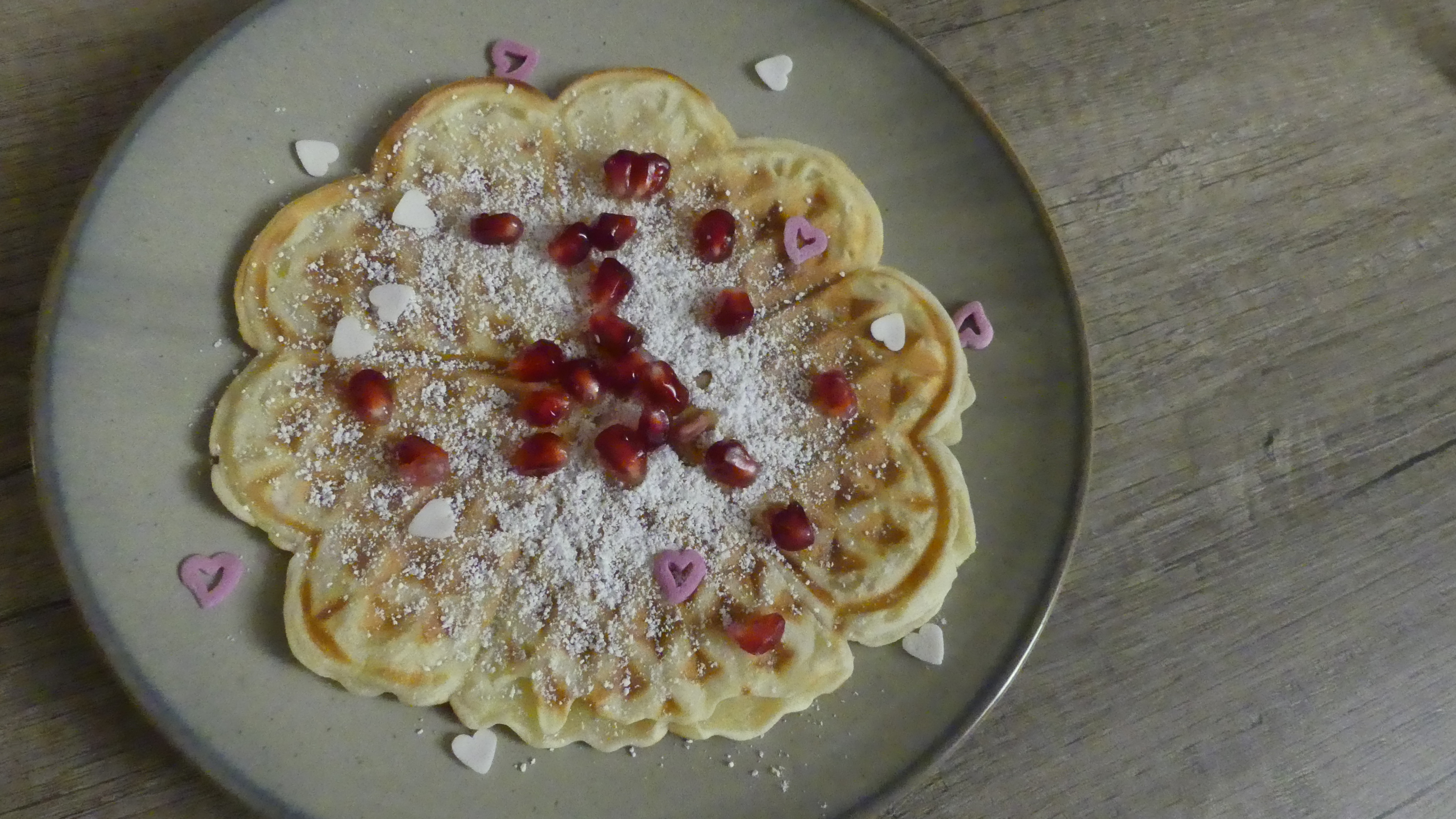 Vorhin dann noch spontan Quarkwaffeln gebacken, die mein Mann sich noch gewünscht hatte, als er nach Hause kam.