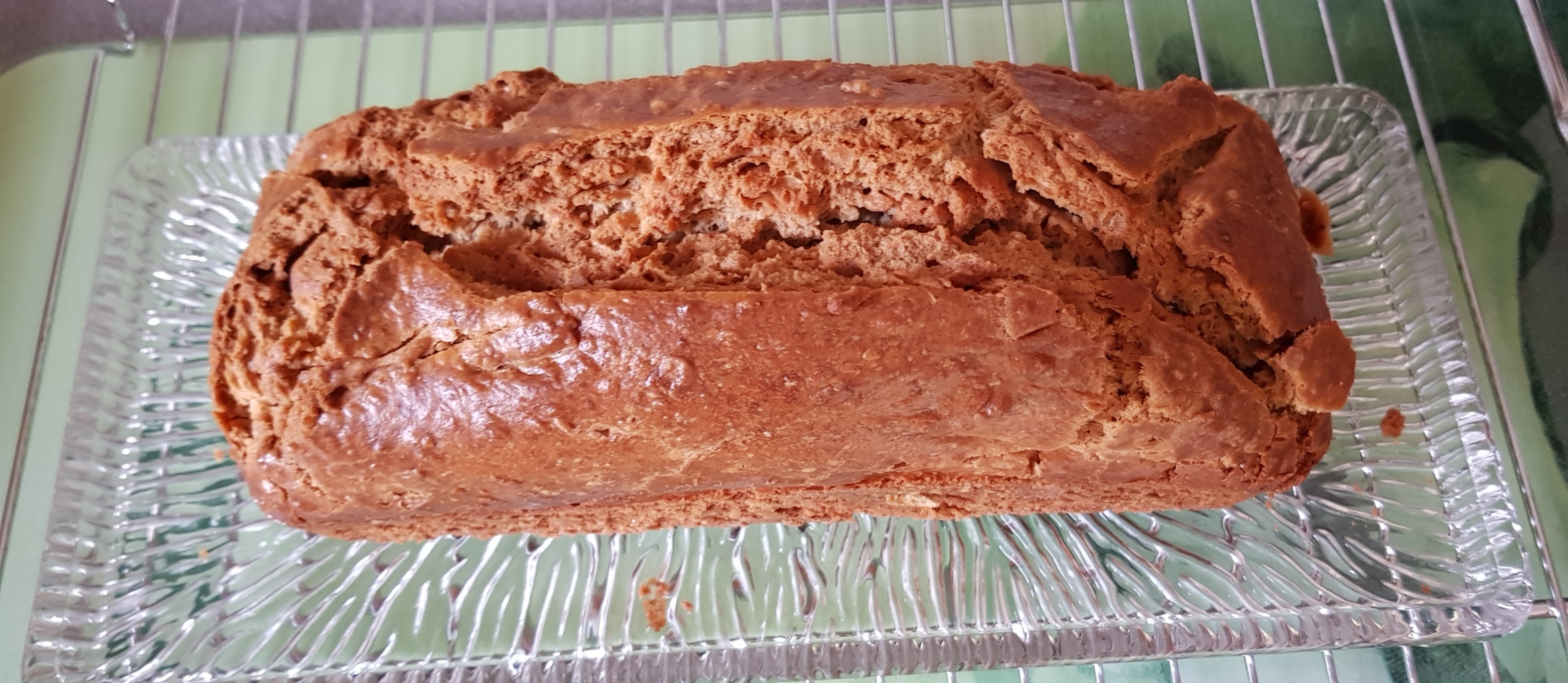 Alles verknetschen und ab in eine gefettete Kastenform ( meine ist aus Glas)