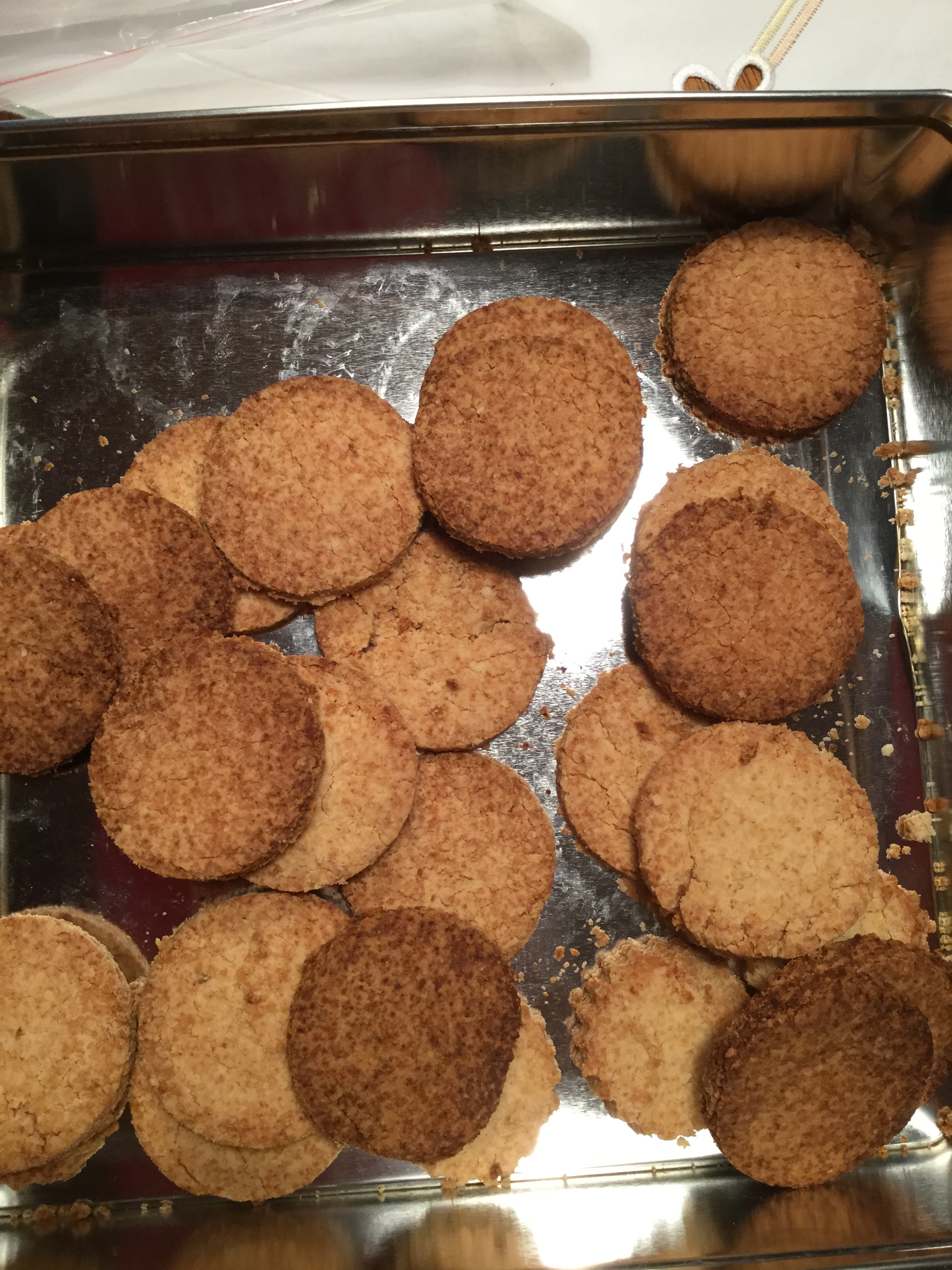 Ich habe Limetten - Mandelkekse gebacken. Die sind so trocken, da staubt es schon fast