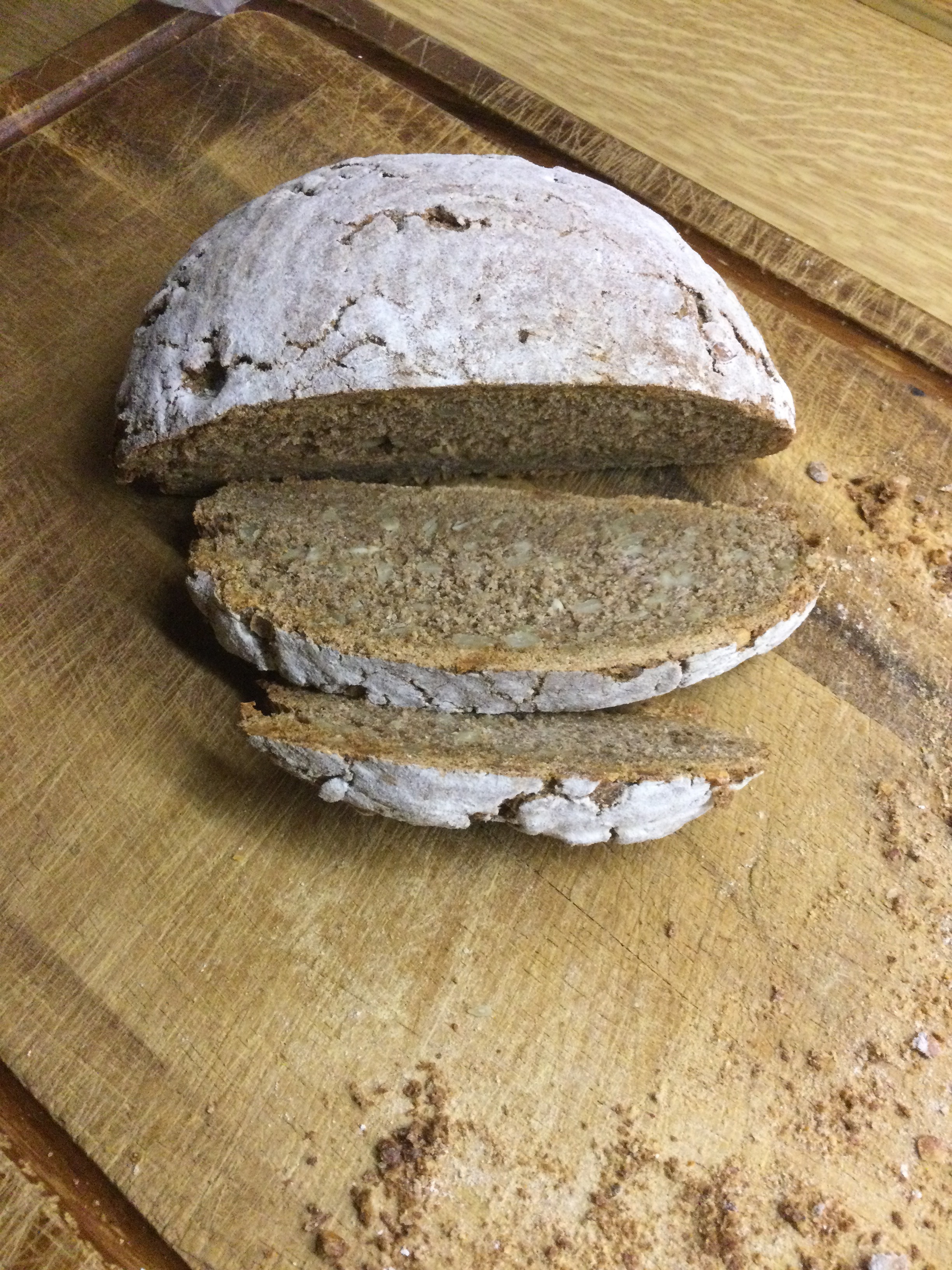 Jetzt habe ich ein Dinkelvollkornbrot mit Sonnenblumenkernen in Arbeit. Das muss jetzt gehen, dann wird es gedehnt und gefaltet und dann wieder gehen bis morgen früh. Mal schauen was daraus wird.