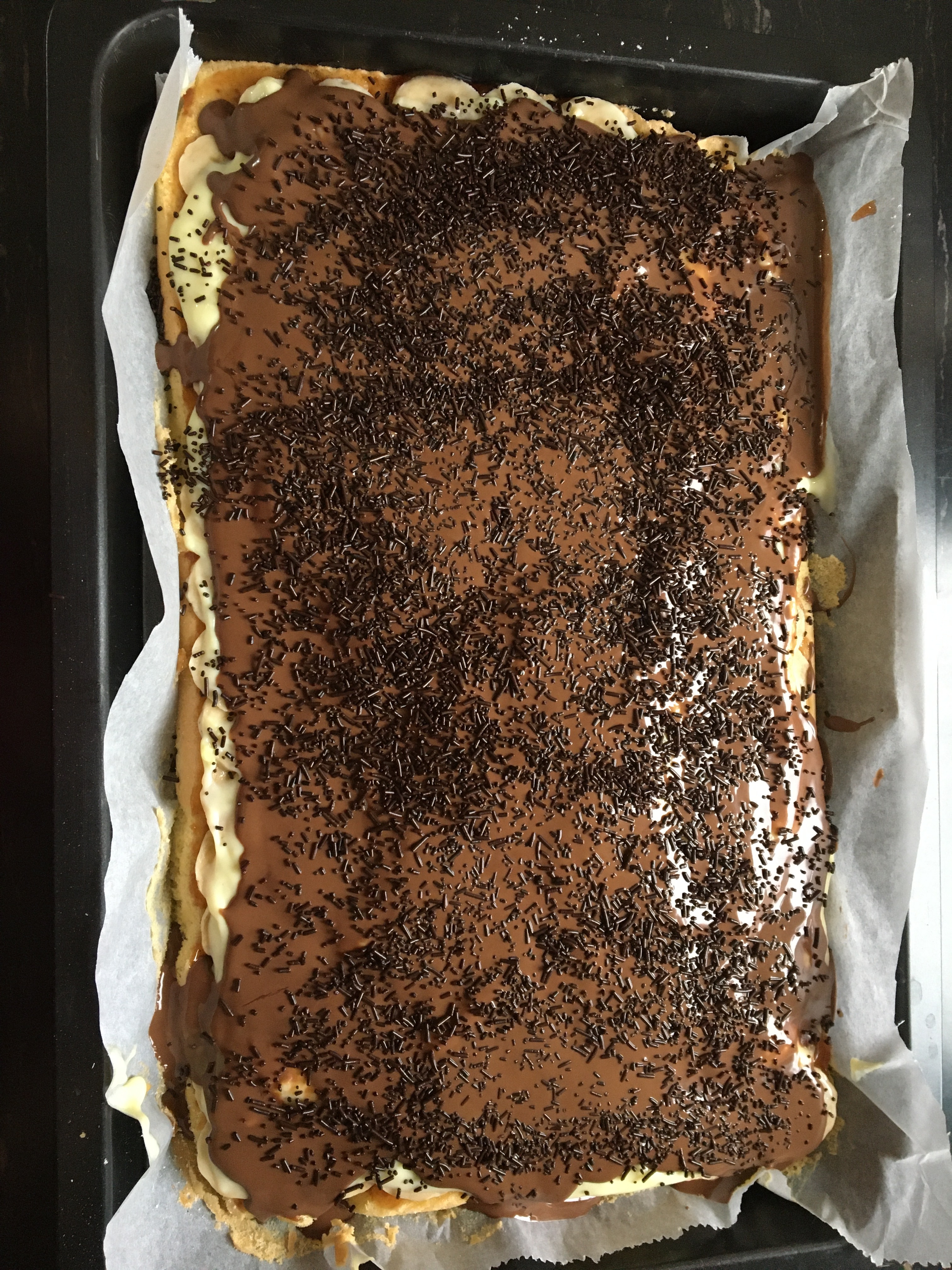 In der Form wäre es bestimmt besser geworden, da der Teig doch etwas auseinander ging, aber geschmacklich ist es für uns gelungen und farblich einfach der Hit.