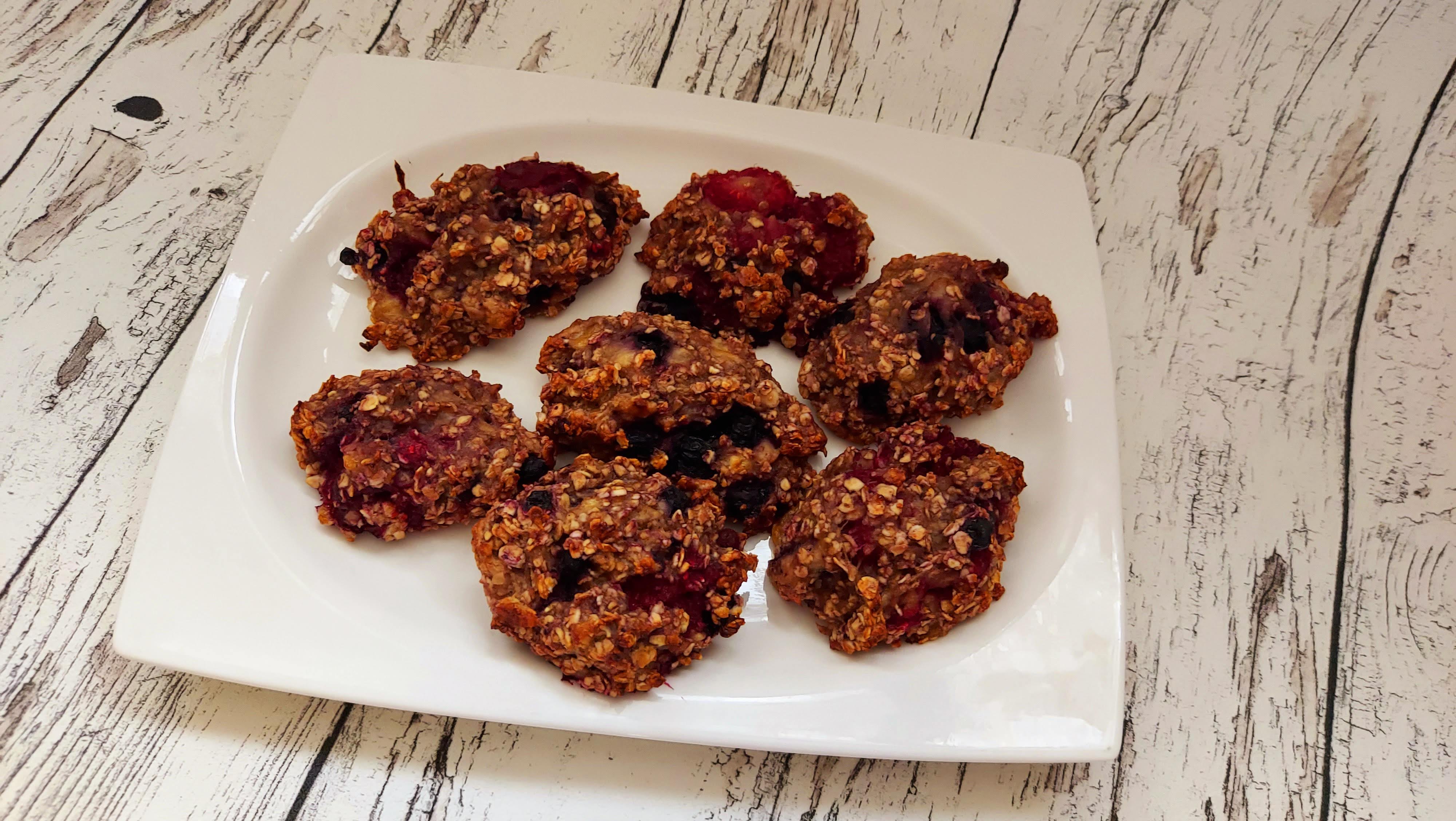 Ich habe für den Kleinen eben mal wieder zuckerfreie Bananen-Müslikekse gebacken, die hier immer gut ankommen
