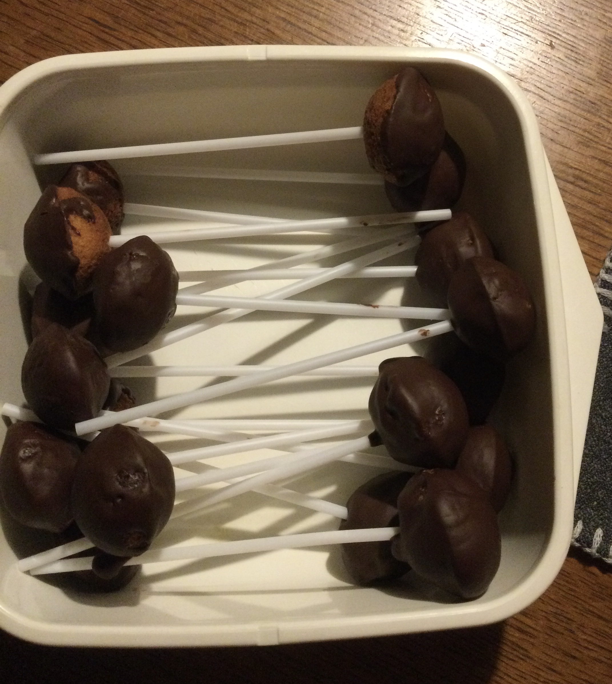Habe wieder Cake Pops gebacken. Ich hatte noch Eiklar vom Eis machen übrig und habe einen „Financier“ Teig gemacht.