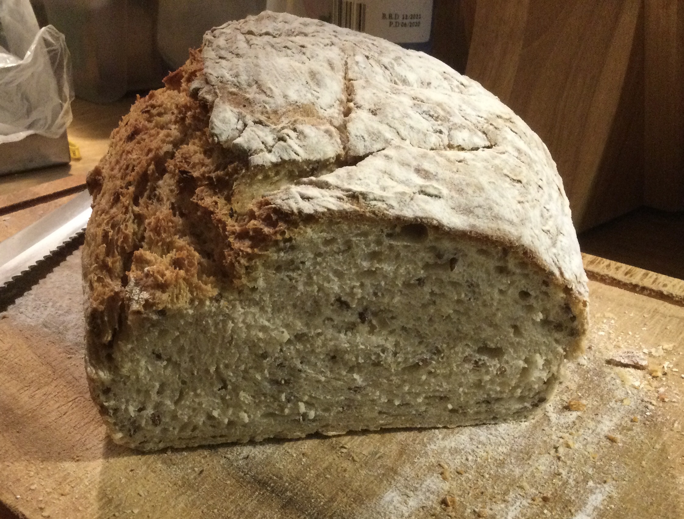 Hier noch ein Foto vom angeschnittenen Brot, habe diesmal beide Mehle Vollkorn genommen.