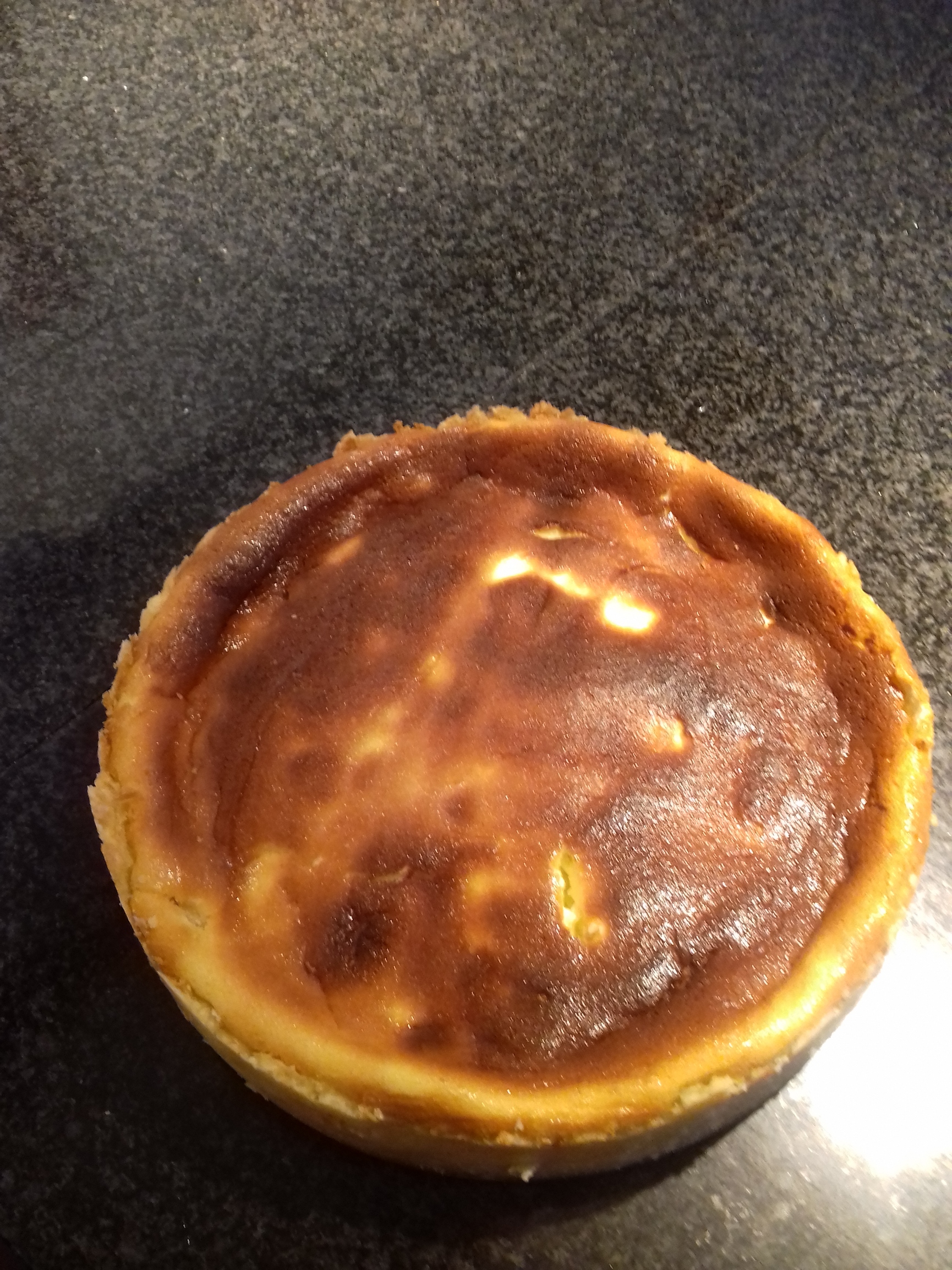 Ich habe heute morgen mal wieder eine Quarktorte gebacken…wie immer mit Aepfeln an Stelle der Rosinen.