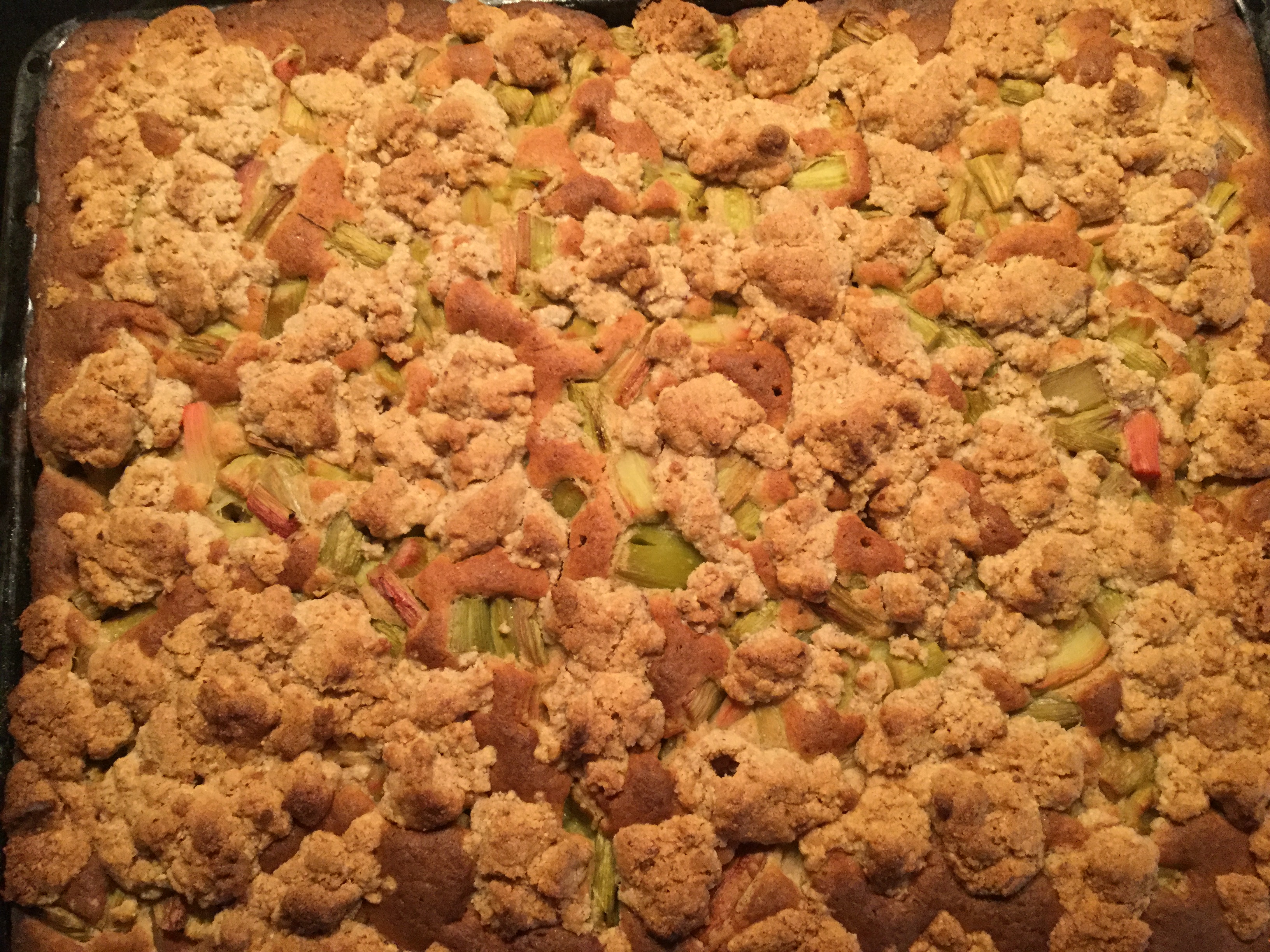 Heute habe ich Rhabarber Kuchen gebacken, mit Dinkelmehl und Xucker.