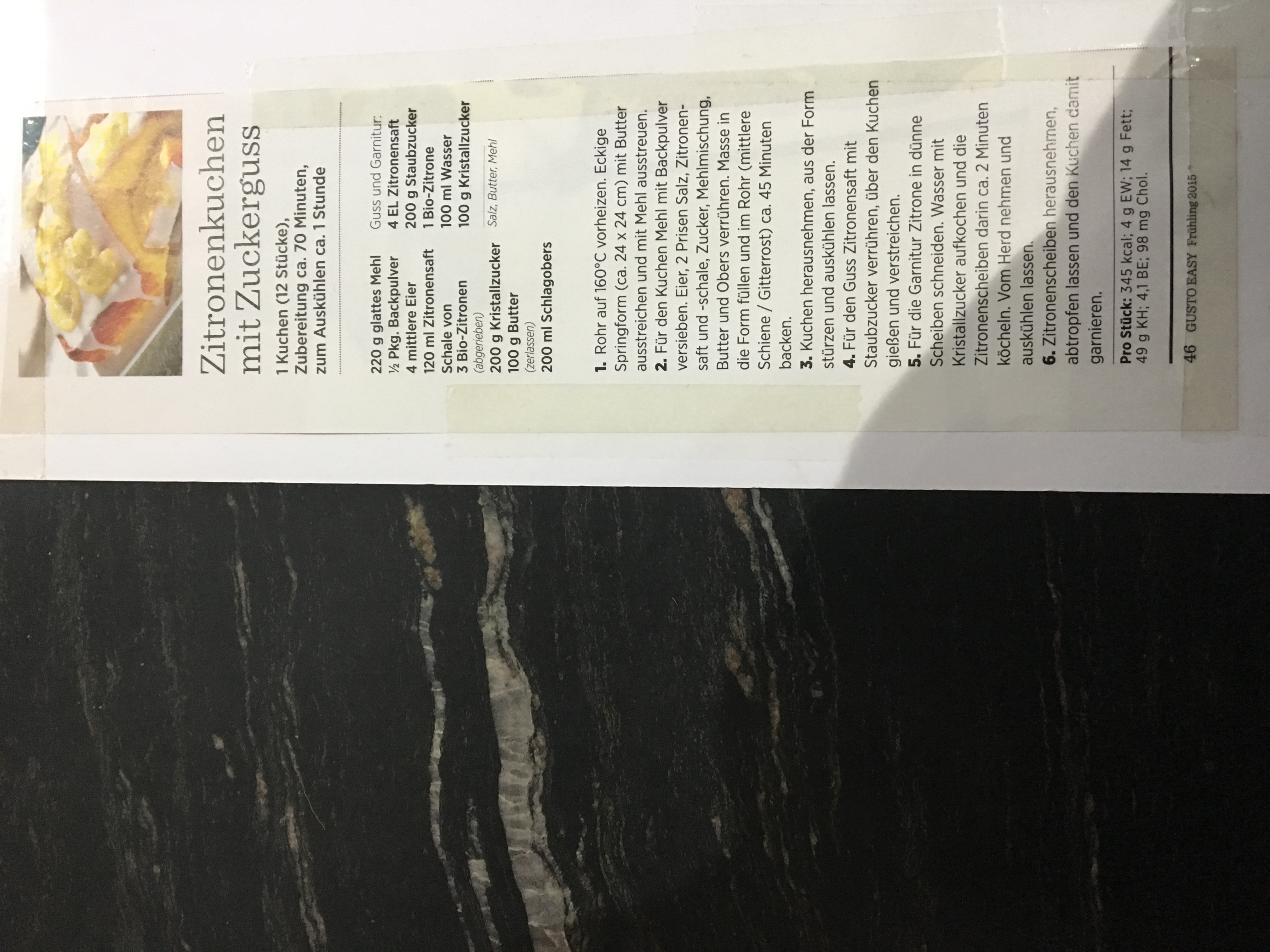 Nimm das Rezept Deines Lieblings-Rührkuchens und lass weg, was außer Zucker, Butter, Eier, Mehl, Backpulver reinkommt. Dafür gibst Du Zitronensaft und Abrieb rein. Obendrauf Zuckerguss. Backzeit, wie der vom Lieblingsrührkuchen.