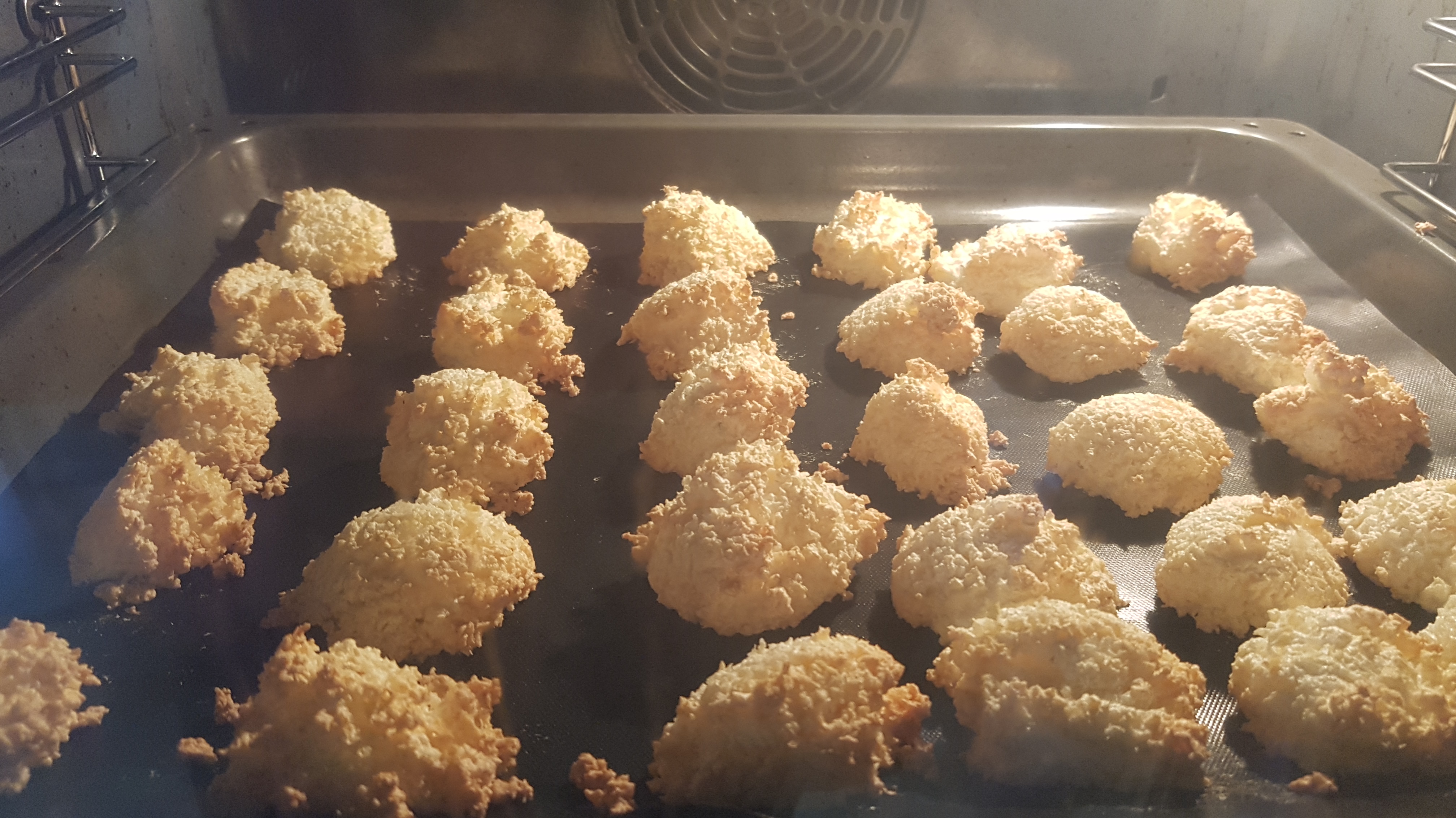 Ich hab heut wieder mal Eiweiß verarbeitet. Und zwar Kokosmakronen und Nussmakronen wurden es! Ja, wenn die Läden Lebkuchen verkaufen können, kann ich auch Makronen backen …